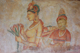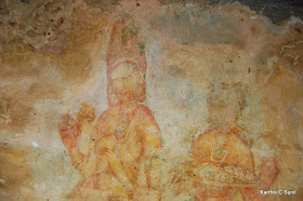 Sigiriya has 2 palaces, one at the ground level, called Summer palace and other one on the top of this rock called Winter palace. King Kashyapa had 500 women servants. He painted each of their images on the walls of caves with natural paint. Currently only around 18 are remaining and rest have been destroyed either naturally or by Buddhist Monks. After King Kashyapa this area was occupied by Buddhists Monks who did not like women paintings and they destroyed most of them.