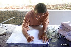 cotton clothes are colored in a very different manner. All the steps are shown on this picture. Initially they take white cotton cloth and artist will mark the design on it. Apply liquid wax on those areas where they want to retain white and let it dry. Later they dip in next lighter color of the frame, in above example, it is yellow. Then apply wax on those parts of cloths which they want to retain yellow (Elephant) and dip into next lighter color (i.e. red) and so on. The entire process would take tens of days. Its tough job