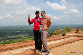 We got up early in the morning finished break fast (Hardly got anything to eat. We ate bread-butter-jam and some fruit juice) and started to Sigiriya Rock by 8:30 AM. Rock is really hard to climb, its around 1000 ft high with 1200 steps. It was called Simha Giri - which means Lion Rock. You can see that it is in the shape of Lion Sitting.